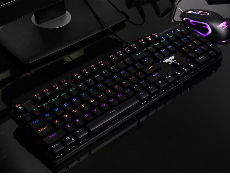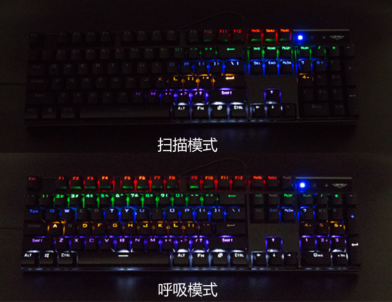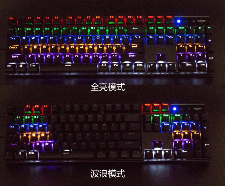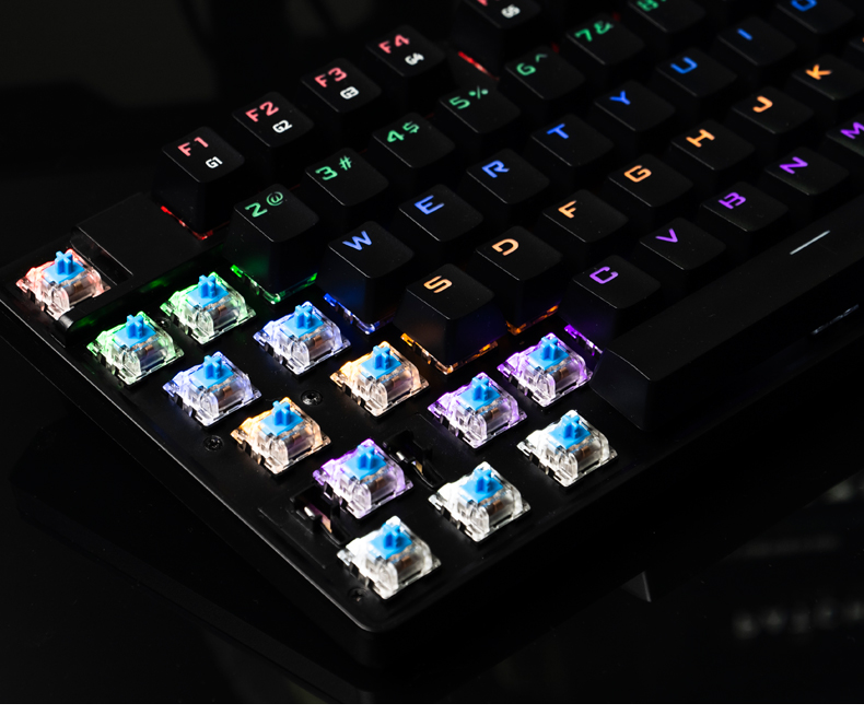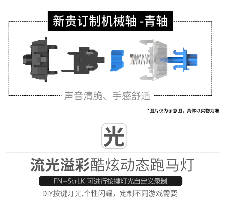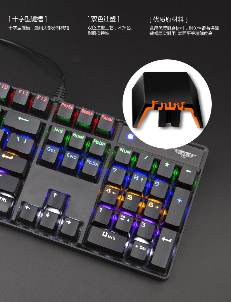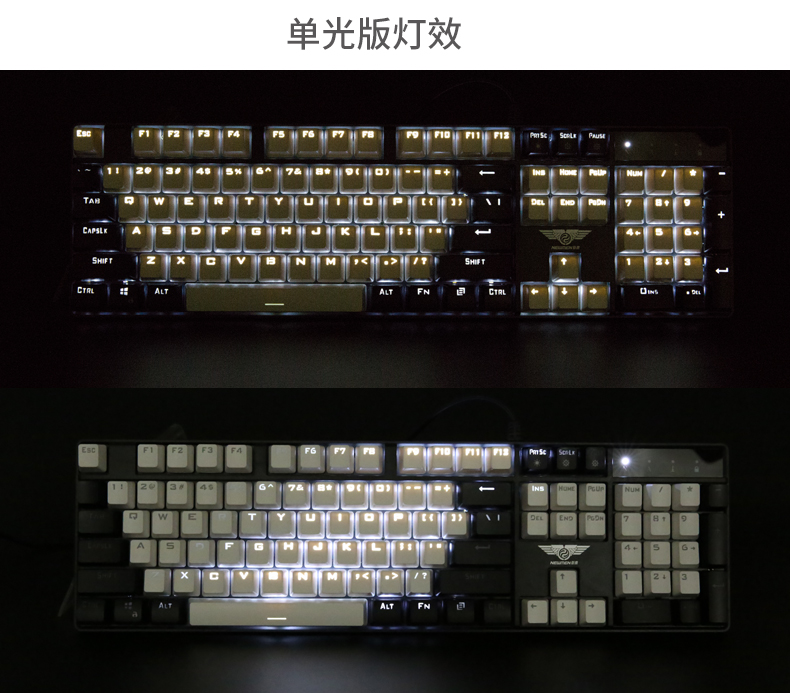 新贵GM340青轴混光全键无冲机械键盘专业游戏电竞ABS耐磨键帽透光